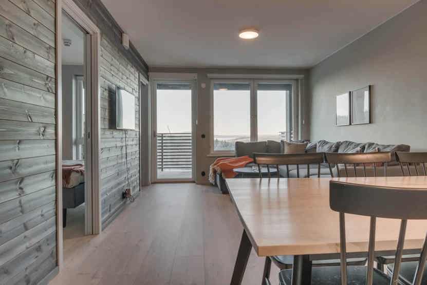 tørreskab, 1 barneseng, 1 højstol, balkon/altan (der skovles ikke sne), skiopbevaring, med en fælles indgang, elevator findes i huset, garageplads til 1 bil, parkeringsbredde 2,35 m og maks. højde 2,25 m, elbilopladere med type 2 stik.