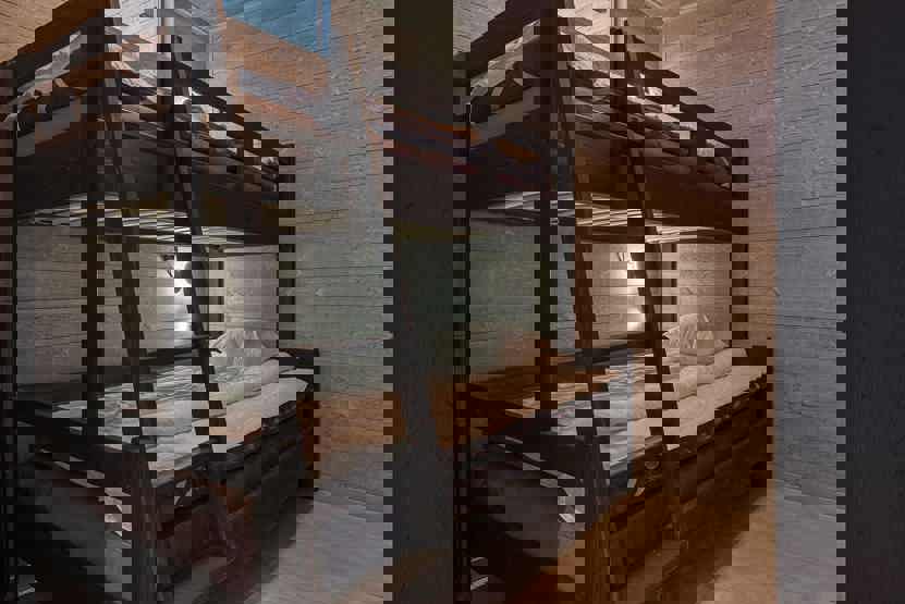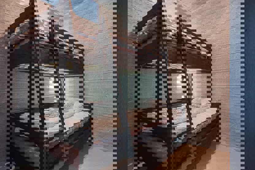 Soveværelse-1 = 1 dobbeltseng 180 cm bred. Soveværelse-2 = 1 køyeseng med 120 cm bred underkøye og 90 cm bred overkøye, I værelse uden vindue. Soveværelse-3 = 1 dobbeltseng 180 cm bred. Soveværelse-4 = 1 dobbeltseng 180 cm bred. Soveværelse-5 = 1 køyeseng med 120 cm bred underkøye og 90 cm bred overkøye, I værelse uden vindue. Soveværelse-6 = 1 køyeseng med 120 cm bred underkøye og 90 cm bred overkøye.