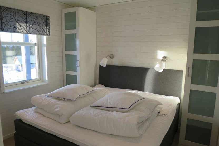 Soveværelse-1 = 1 køjeseng med 150 cm bred underkøje. Soveværelse-2 = 1 dobbeltseng. Soveværelse-3 = 1 køjeseng. Soveværelse-4 = 1 dobbeltseng.