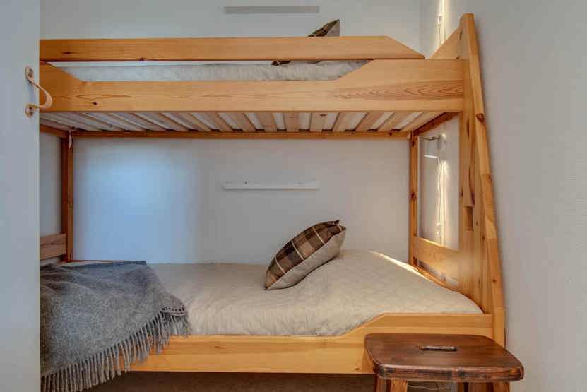 Soveværelse-1 = 1 dobbeltseng. Soveværelse-2 = 1 køjeseng. Soveværelse-3 = 1 våningssäng m1 køyeseng med 105 cm bred underkøye og 90 cm bred overkøye.