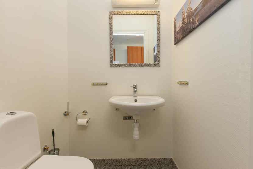 Badeværelse 1 = bruser, badekar og lille sauna. Badeværelse 2 = bruser. Badeværelse 3 = wc. Badeværelse 4 = wc.