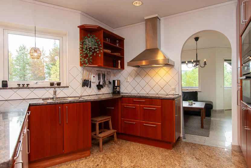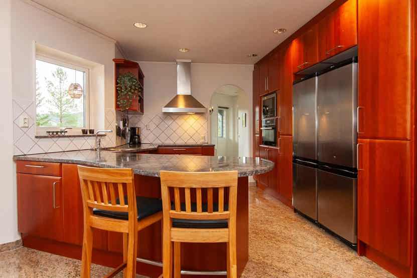 Køkkenet indeholder komfur med ovn, 2 køleskab med fryser, opvaskemaskine, mikro.