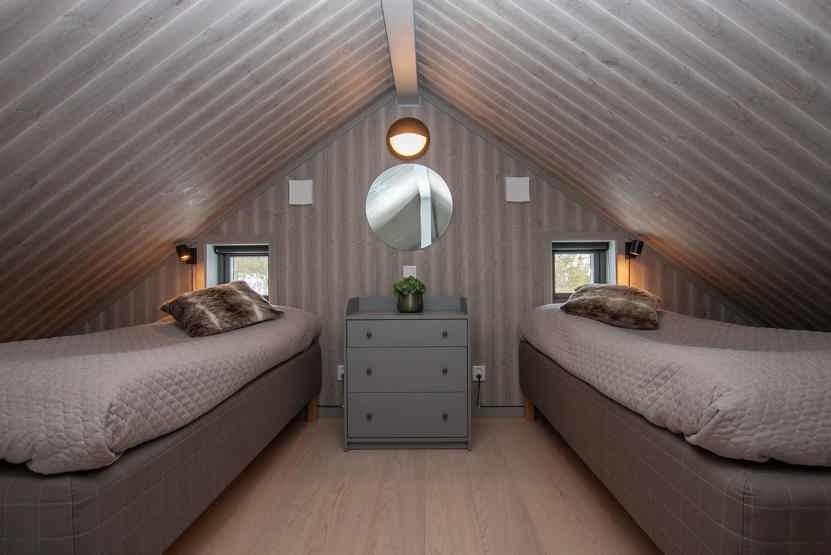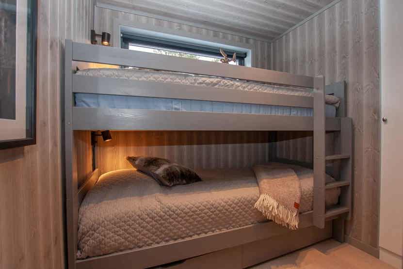 Soveværelse-1 = 1 dobbeltseng 160 cm bred. Soveværelse-2 = 1 køjeseng hvor både over og underkøje er 90 cm bred.