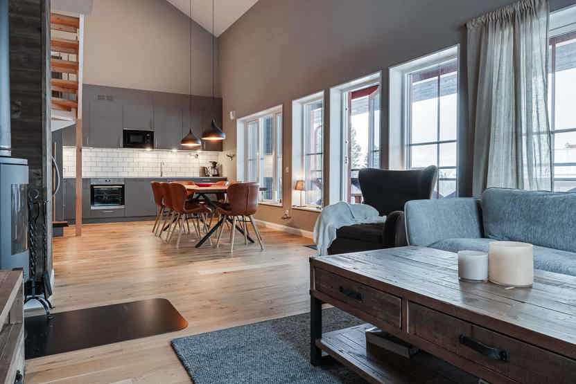 Grizzly Apartments ligger i Björnrike. Lejlighed på 2 etage, 8+1 sengepladser, 119 kvm, alrum med køkkenafdeling, 4 soveværelse, 2 brusere, 2 WC, sauna.