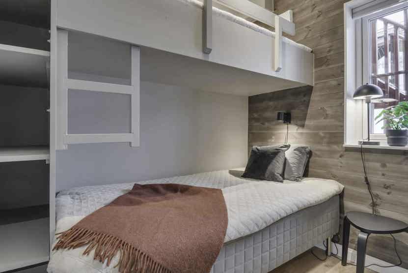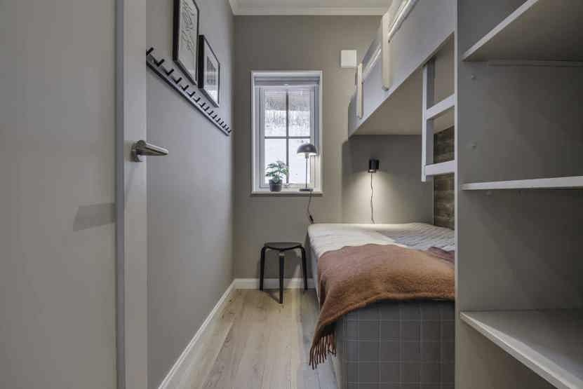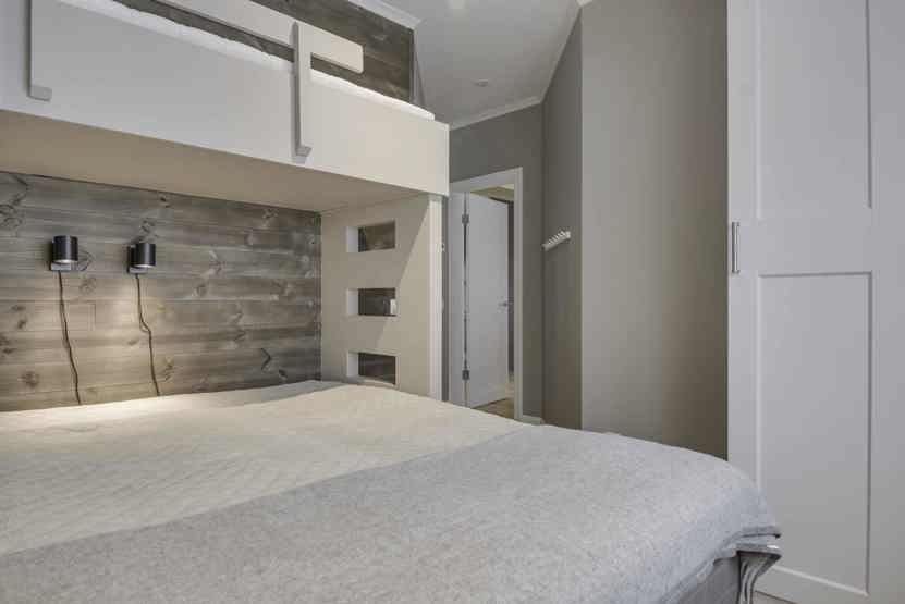 Soveværelse-1 = 1 køyeseng med 120 cm bred underkøye og 80 cm bred overkøye. Soveværelse-2 = 1 køjeseng med 105 cm bred underkøje og 80 cm bred overkøje. Soveværelse-3 = 1 køjeseng med 160 cm bred underkøje.