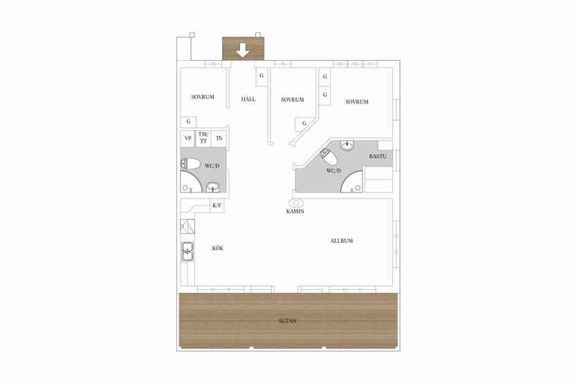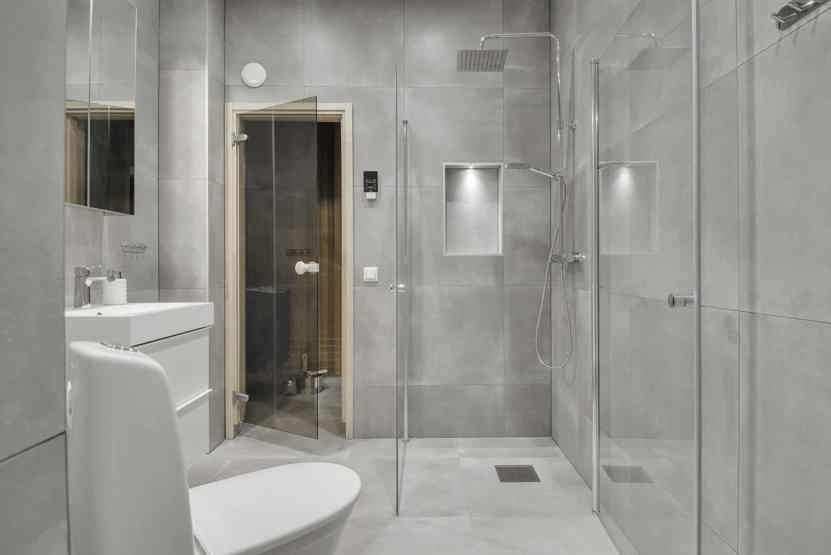 Badeværelse 1 = bruser/WC/sauna. Badeværelse 2 = bruser/WC.