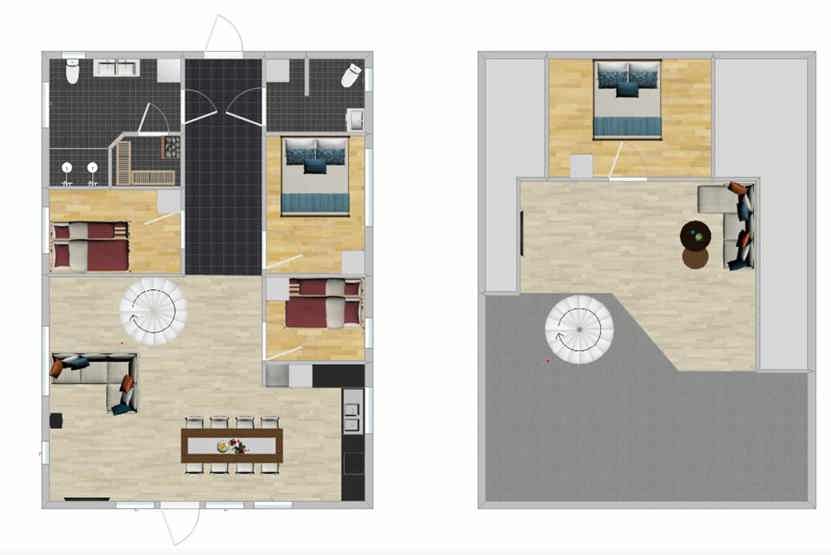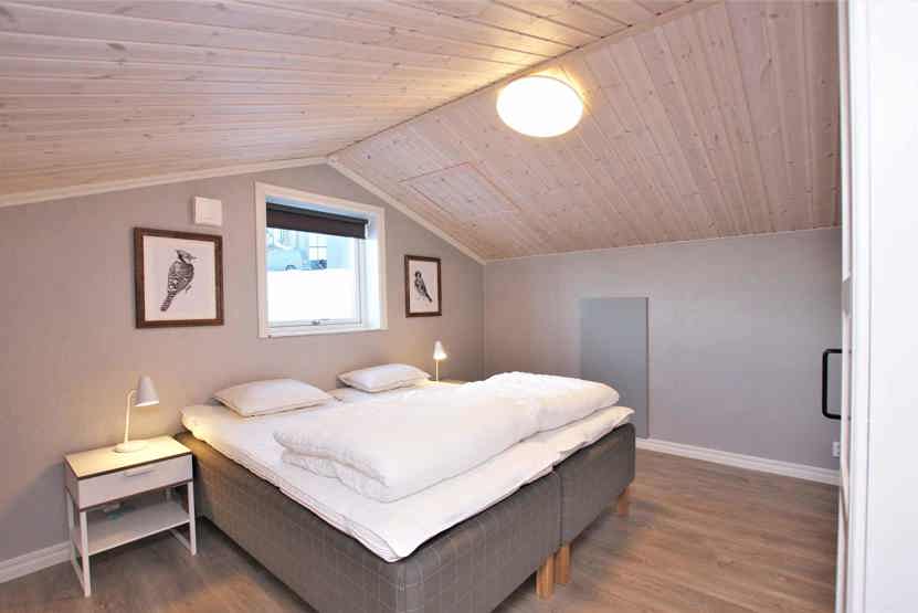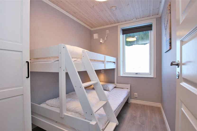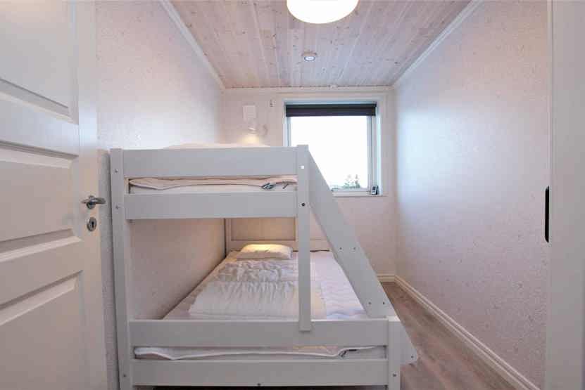 Soveværelse-1 = 1 dobbeltseng. Soveværelse-2 = 1 køjeseng med 120 cm bred underkøje. Soveværelse-3 = 1 køjeseng med 120 cm bred underkøje. Soveværelse-4 = 1 dobbeltseng.