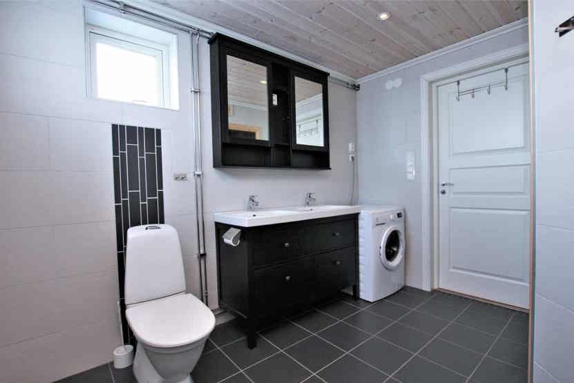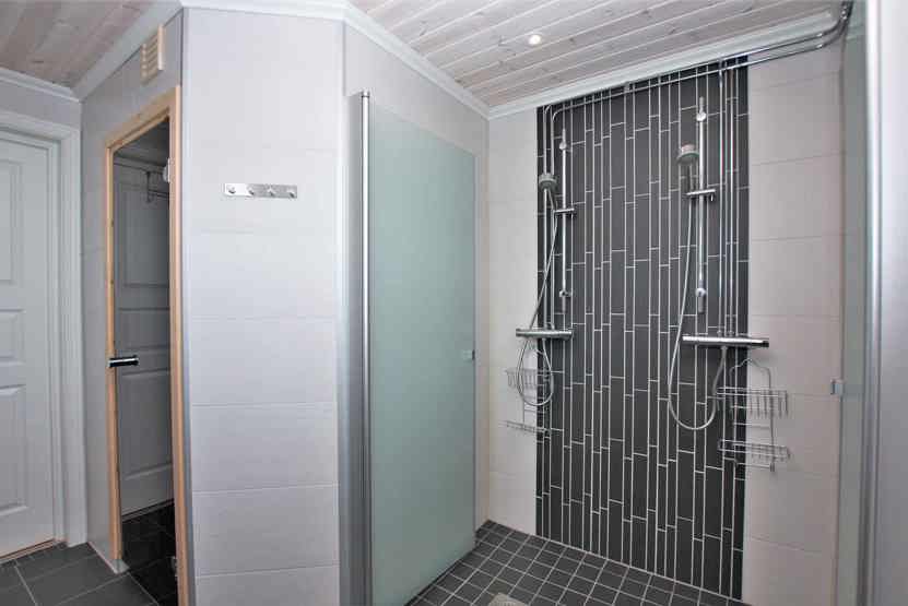 Badeværelse 1 = bruser, WC samt lille sauna. Badeværelse 2 = wc.
