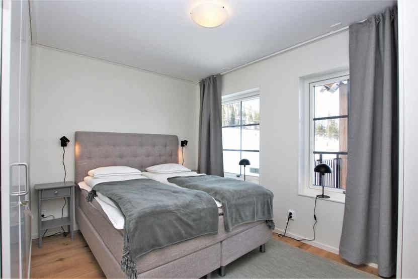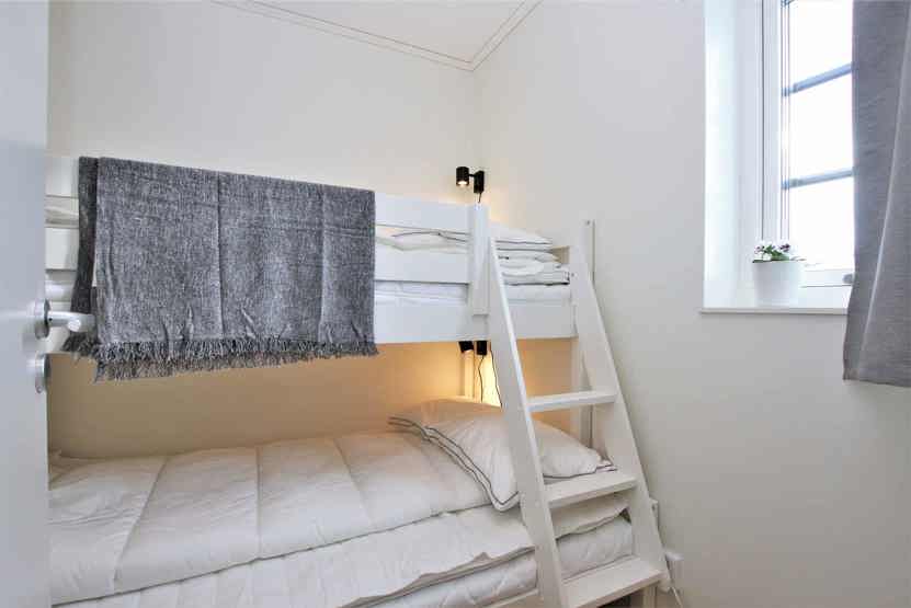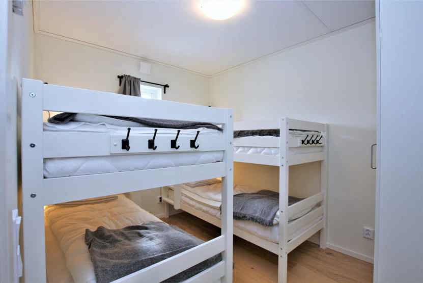 Soveværelse-1 = 1 dobbeltseng. Soveværelse-2 = 2 køjesenge hvor både over og underkøje er 90 cm bred. Soveværelse-3 = 1 køjeseng med 120 cm bred underkøje.
