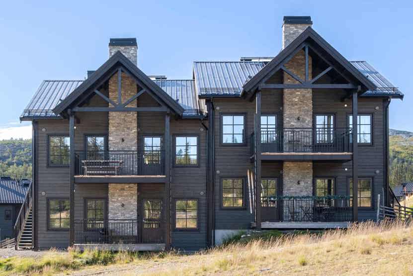Högåsvillorna ligger i Vemdalsskalet. Lejlighed på første etage, 8 sengepladser, 80 kvm, alrum med køkkenafdeling, 3 soveværelse, 2 brusere, 2 WC, sauna.