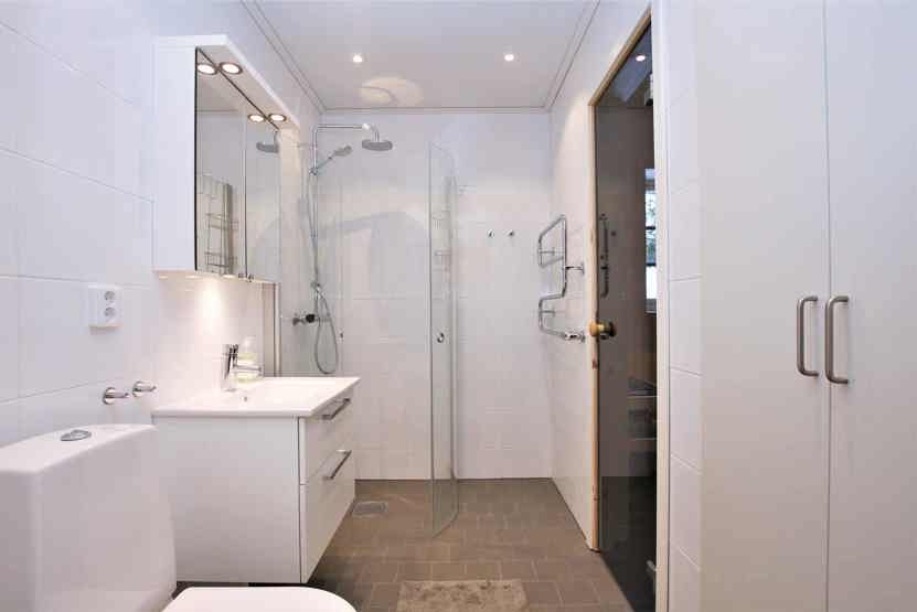 Badeværelse 1 = bruser/WC/sauna. Badeværelse 2 = bruser/WC.