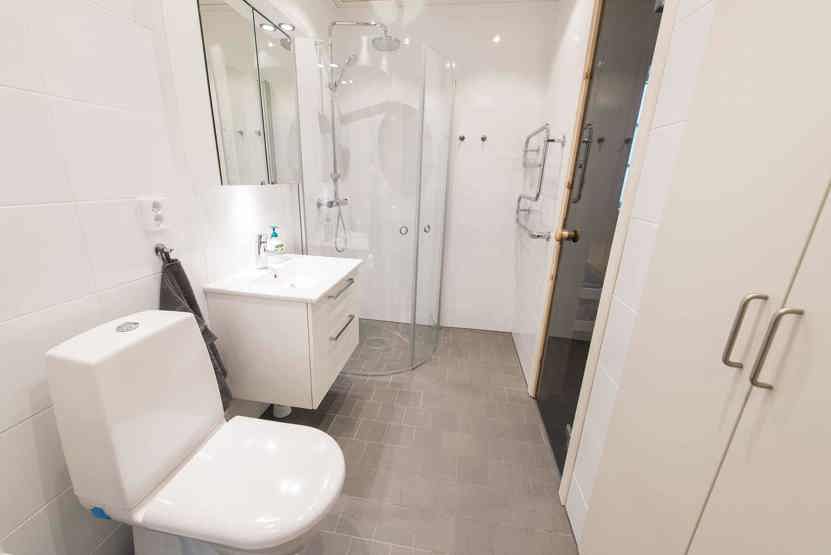 Badeværelse 1 = bruser/WC/sauna. Badeværelse 2 = bruser/WC.