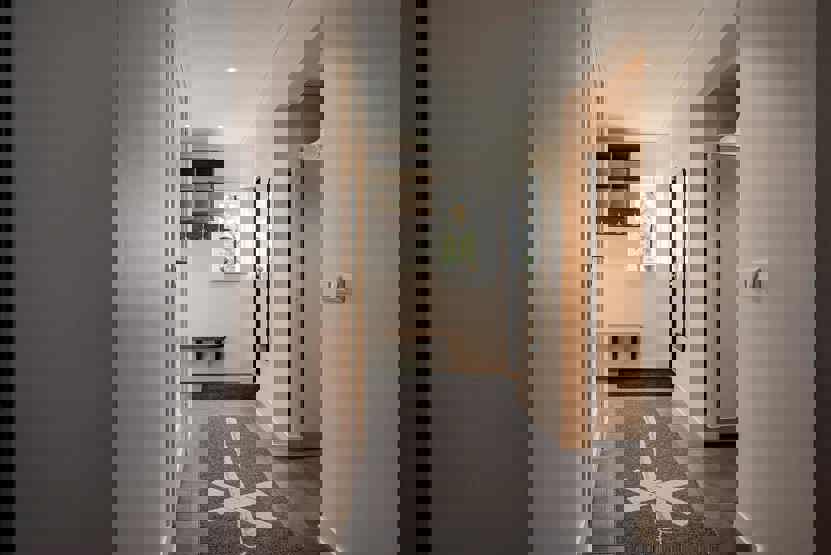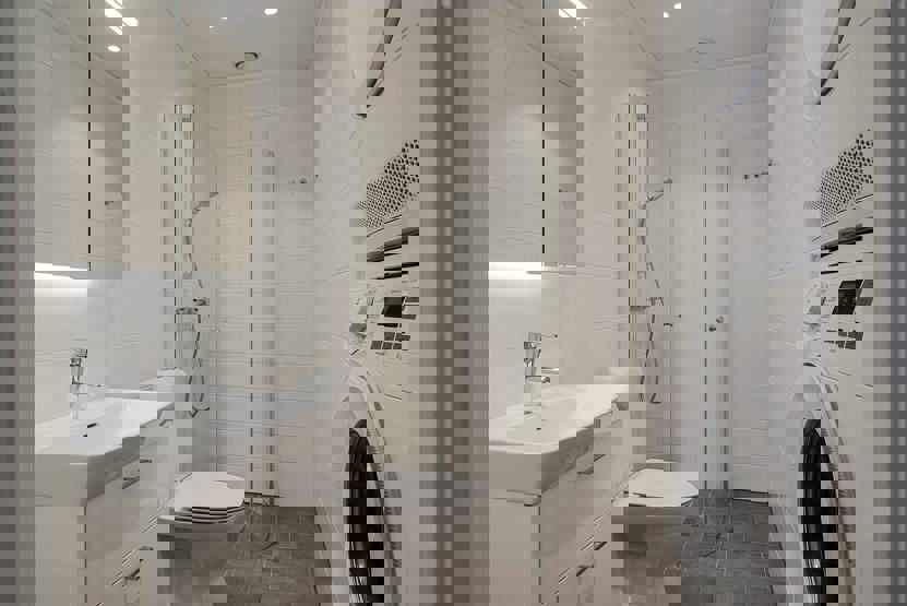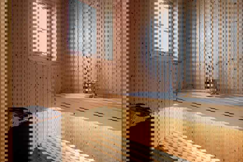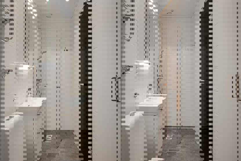 Badeværelse 1 = bruser/WC/sauna. Badeværelse 2 = bruser/WC.