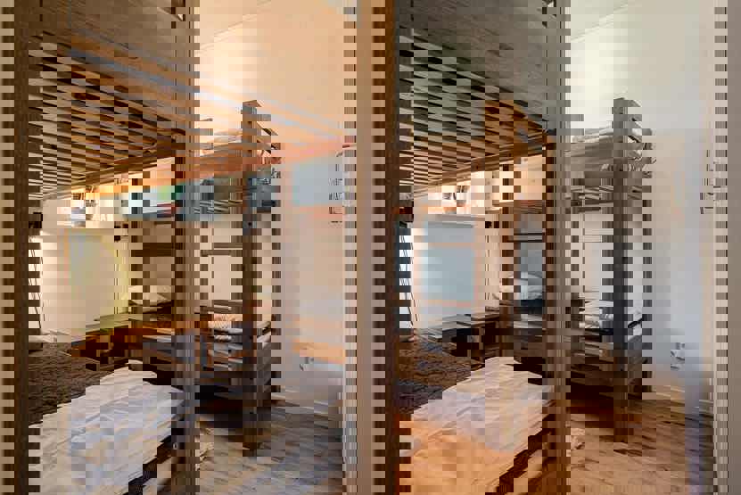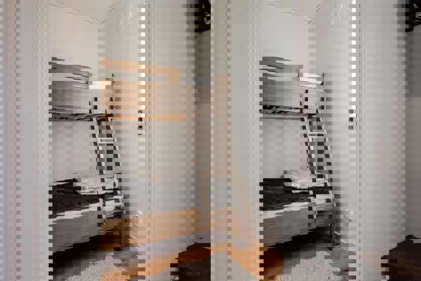 Soveværelse-1 = 1 dobbeltseng 160 cm bred. Soveværelse-2 = 2 køjesenge hvor både over og underkøje er 80 cm bred. Soveværelse-3 = 1 køjeseng med 120 cm bred underkøje.