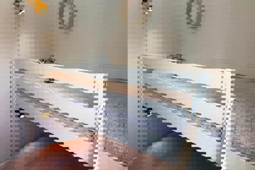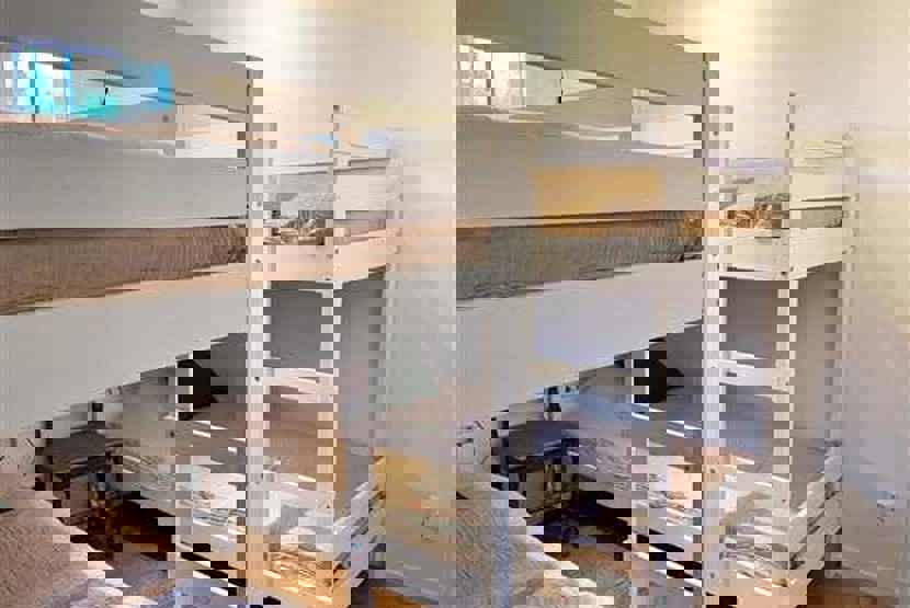 Soveværelse-1 = 1 dobbeltseng 160 cm bred. Soveværelse-2 = 2 køjesenge hvor både over og underkøje er 90 cm bred. Soveværelse-3 = 1 køjeseng med 120 cm bred underkøje.