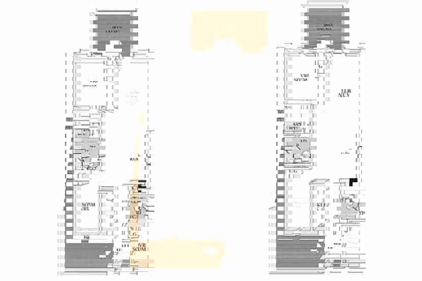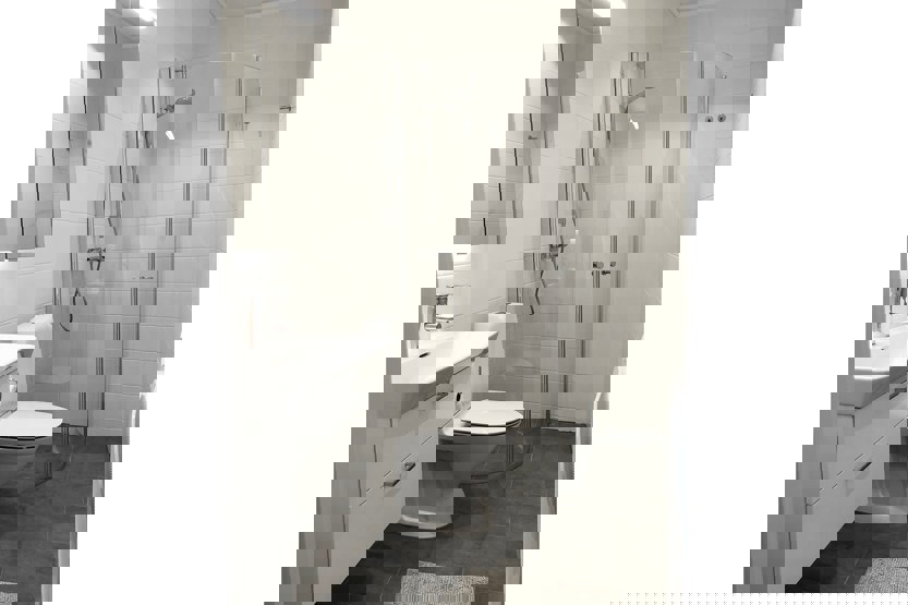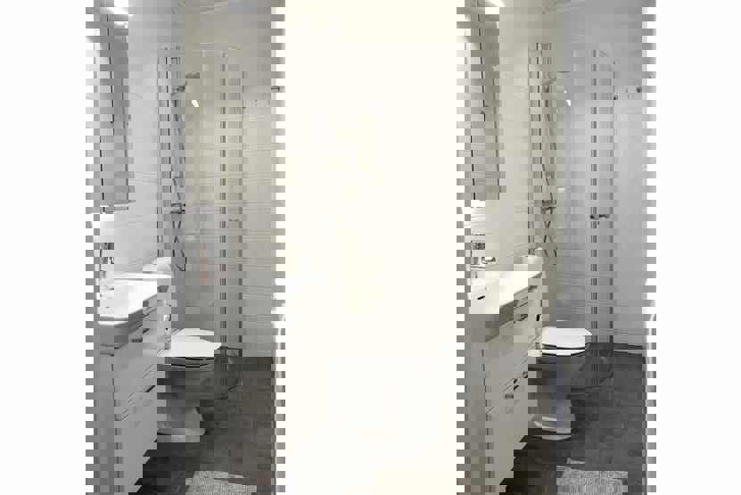 Badeværelse 1 = bruser/WC/sauna. Badeværelse 2 = bruser/WC.