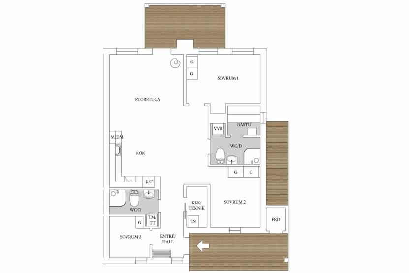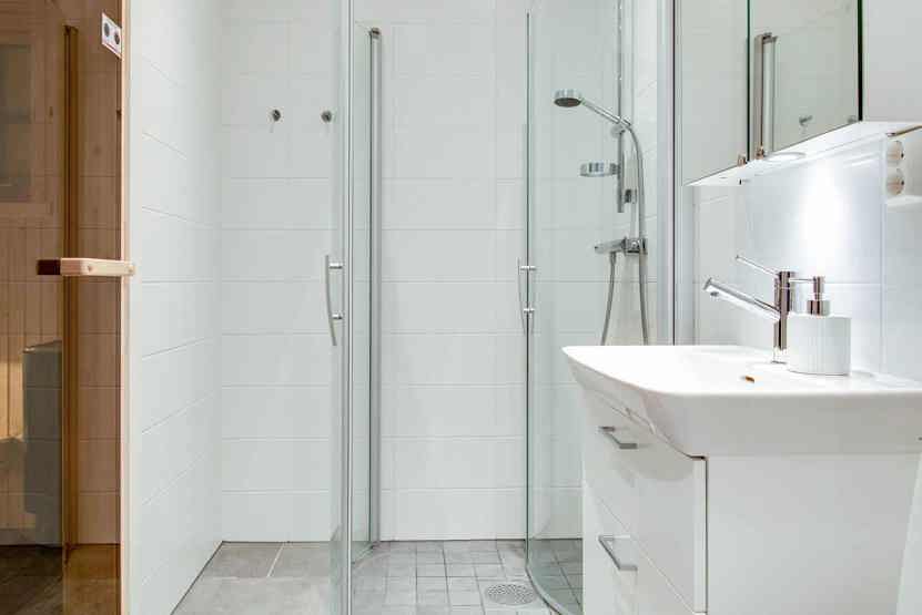 Badeværelse 1 = bruser/WC/sauna. Badeværelse 2 = bruser/WC.