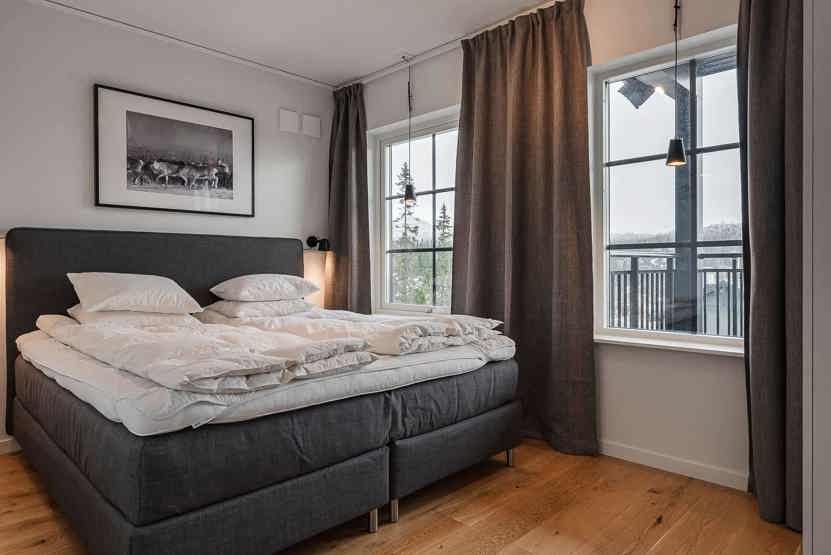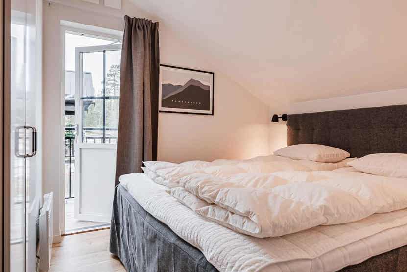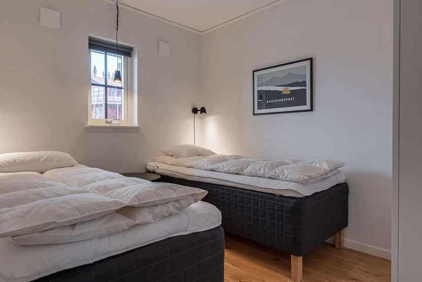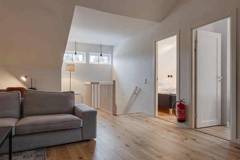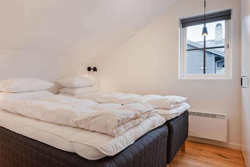 Soveværelse-1 = 1 dobbeltseng 180 cm bred. Soveværelse-2 = 1 dobbeltseng 160 cm bred. Soveværelse-3 = 1 dobbeltseng som kan laves om til to enkeltsenge. Soveværelse-4 = 2 enkeltsenge 80 cm bred.