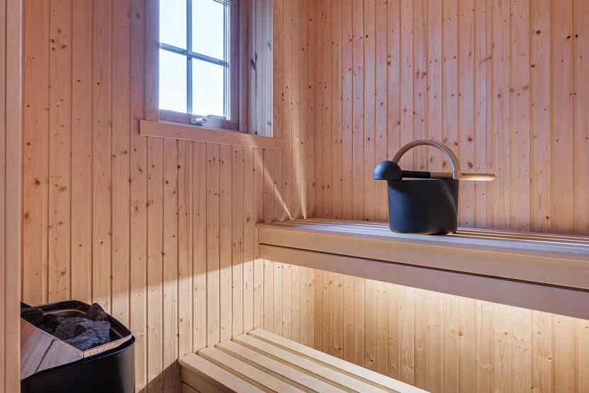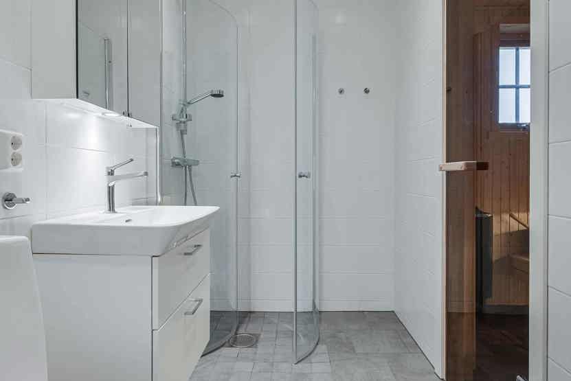 Badeværelse 1 = bruser/WC/sauna. Badeværelse 2 = bruser/WC.