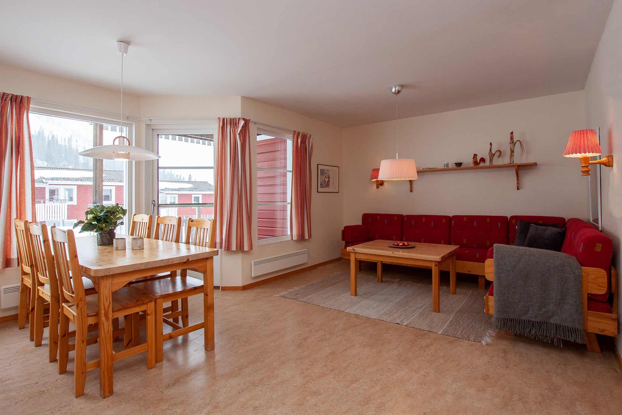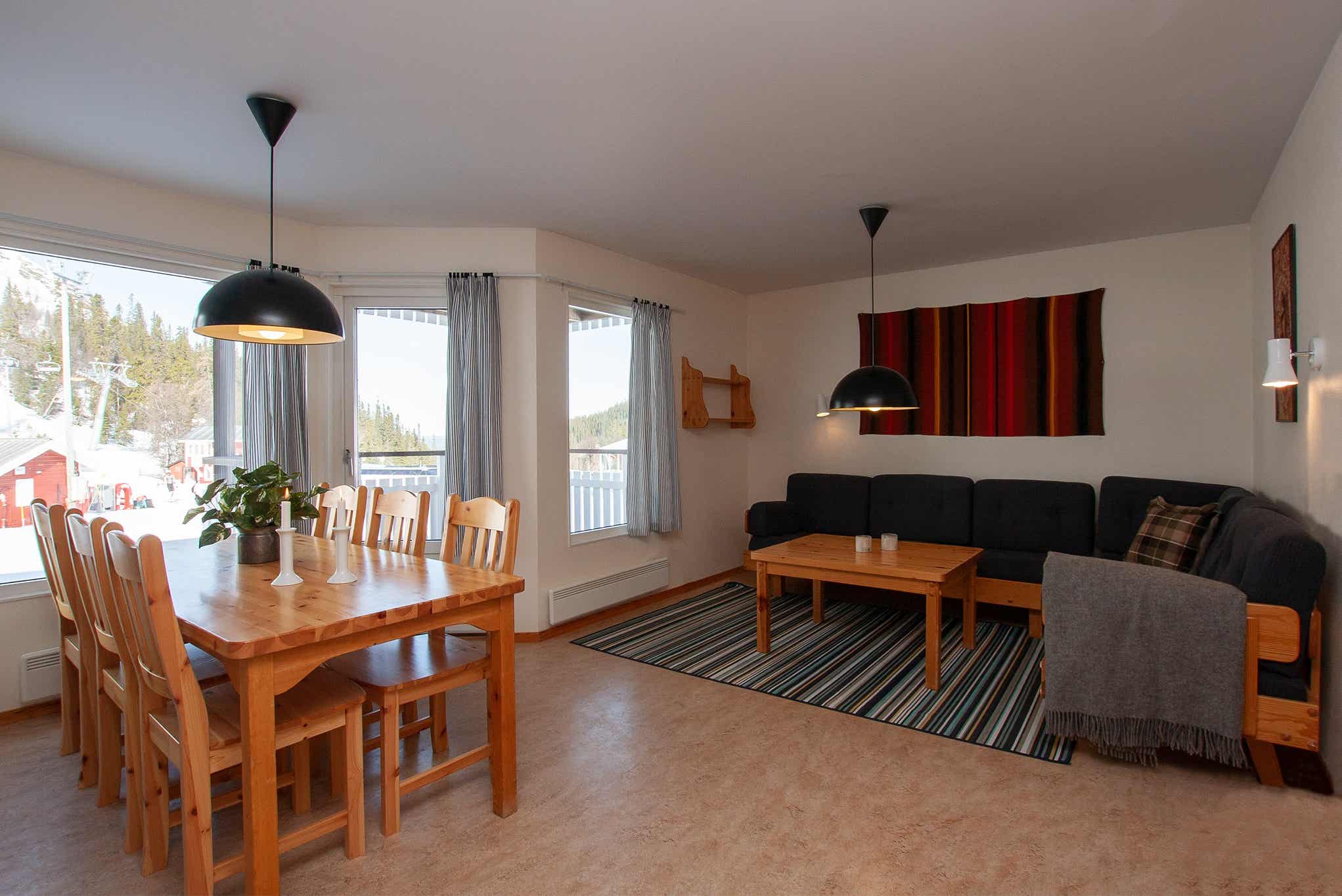 Meget tæt på både skiløb og underholdning. Pisten ligger et par tag med skistavene væk. Skalets torv med mad, butikker og afterski findes inden for et par minutters gåafstand. I de hyggelige lejligheder findes alt, hvad du har brug for til egen madlavning og trivsel.