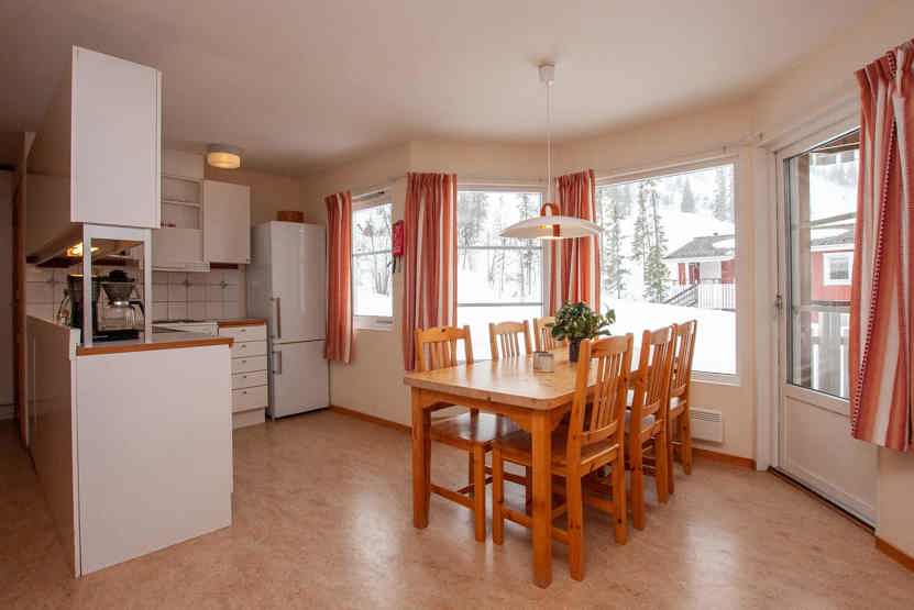 Hovdebyn ligger i Vemdalsskalet. Lejlighed i stueetage, 6 sengepladser, 55 kvm, alrum med køkkenafdeling, 3 soveværelse, 1 bruser, 1 WC.