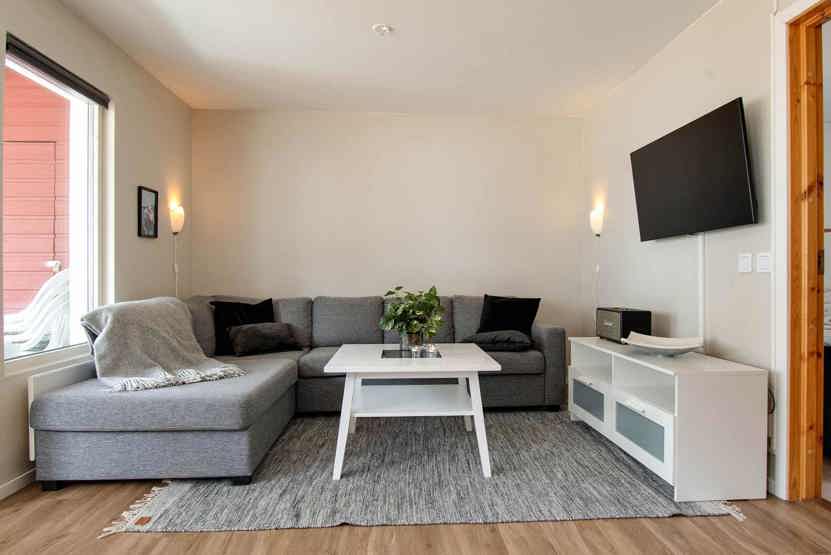 vaskemaskine, tørreskab, balkon/altan (der skovles ikke sne), skiopbevaring, 1parkering med motorvarmeplads.