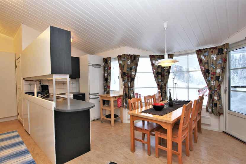 Stue med TV, lille køkkenafdeling. tørreskab, balkon/altan (der skovles ikke sne), skiopbevaring, 1parkering med motorvarmeplads.