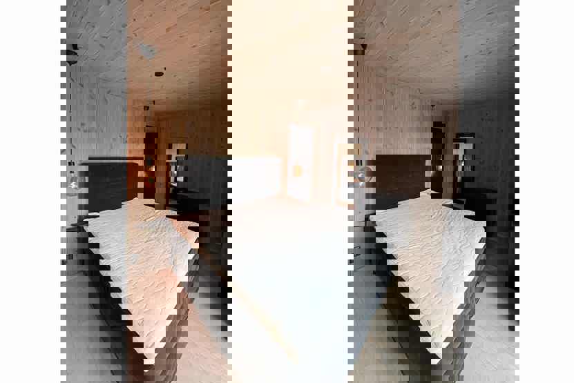 Soveværelse-1 = 1 dobbeltseng 160 cm bred. Soveværelse-2 = 1 køjeseng med 160 cm bred underkøje og 90 cm bred overkøje. Soveværelse-3 = 1 køyeseng med 120 cm bred underkøye og 80 cm bred overkøye. Soveværelse-4 = 1 dobbeltseng 180 cm bred.