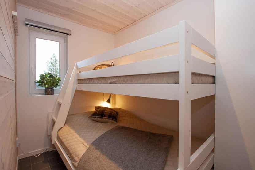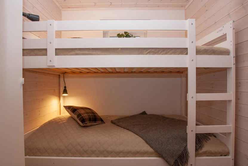 Soveværelse-1 = 1 køjeseng med 120 cm bred underkøje. Soveværelse-2 = 1 køjeseng.