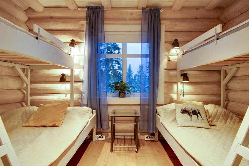 Soveværelse-1 = 1 dobbeltseng. Soveværelse-2 = 1 dobbeltseng. Soveværelse-3 = 1 køjeseng. Soveværelse-4 = 2 køjesenge med 120 cm bred underkøje.