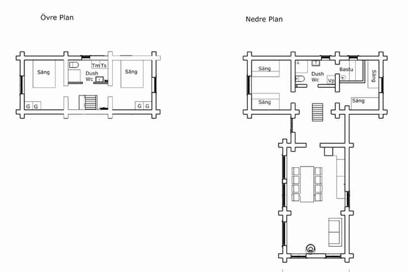 Badeværelse 1 = bruser/WC/sauna. Badeværelse 2 = bruser/WC.