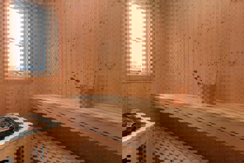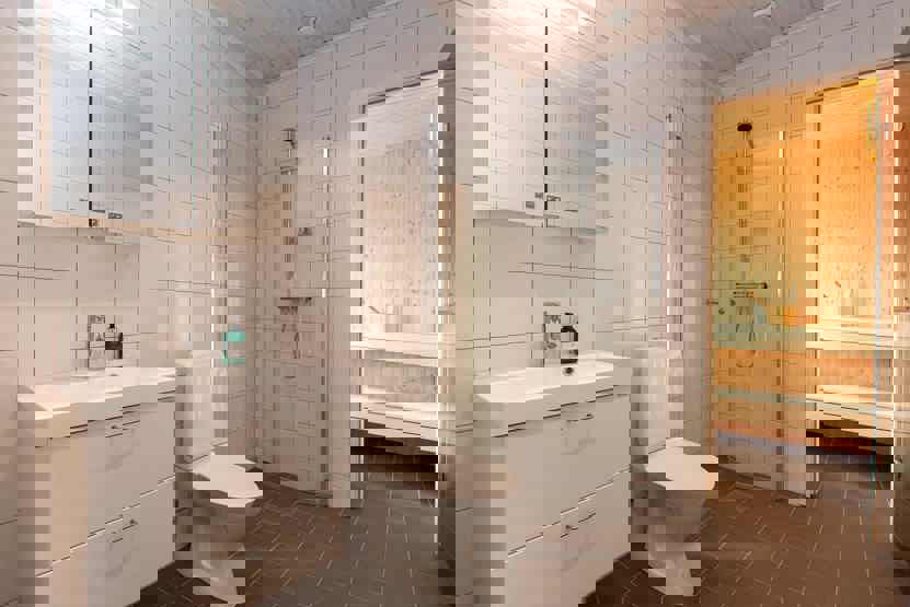 Badeværelse 1 = bruser/WC/sauna. Badeværelse 2 = wc.