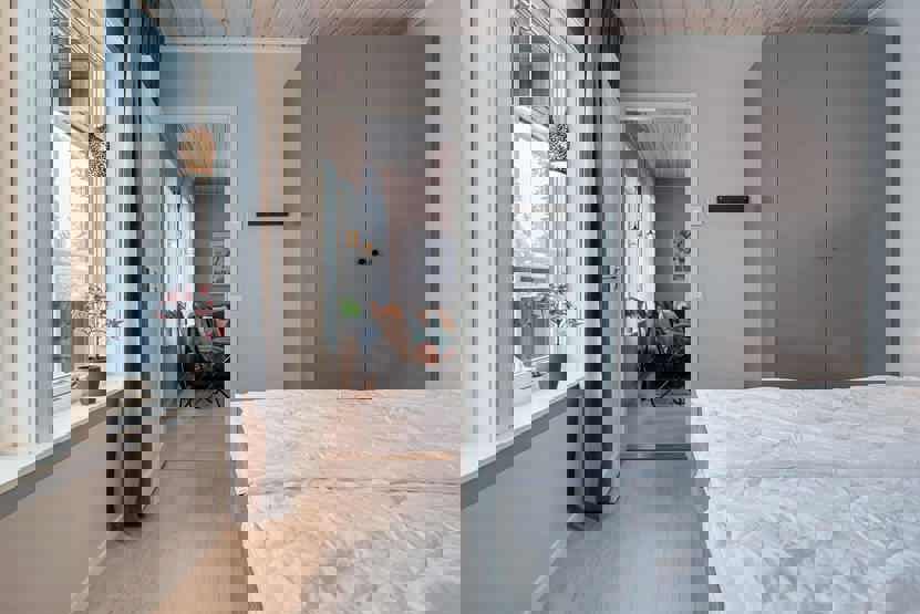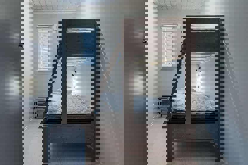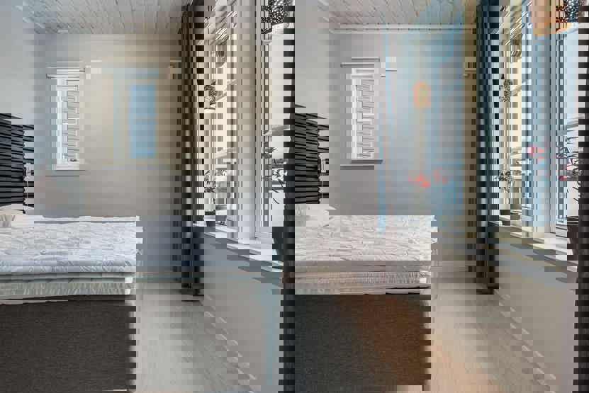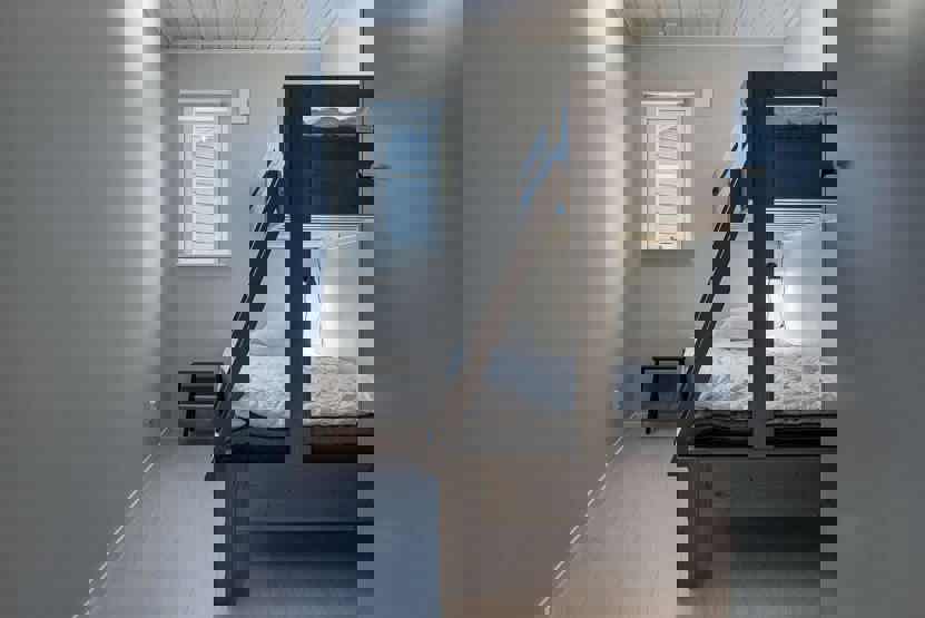 Soveværelse-1 = 1 dobbeltseng 180 cm bred. Soveværelse-2 = 1 køyeseng med 120 cm bred underkøye og 80 cm bred overkøye. Soveværelse-3 = 1 køyeseng med 120 cm bred underkøye og 80 cm bred overkøye.