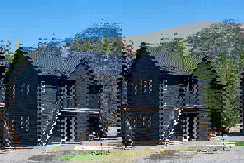 Klockarfjället ligger i Vemdalsskalet. Lejlighed på første etage, 6 sengepladser, 77 kvm, alrum med køkkenafdeling, 3 soveværelse, 1 bruser, 2 WC, sauna, byggeår 2023.