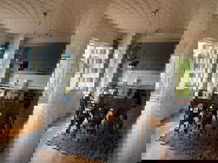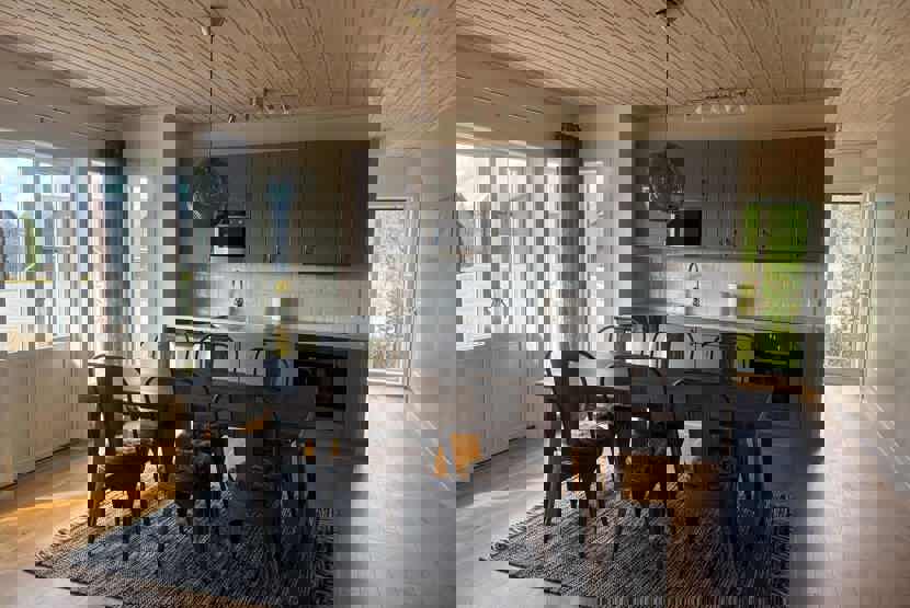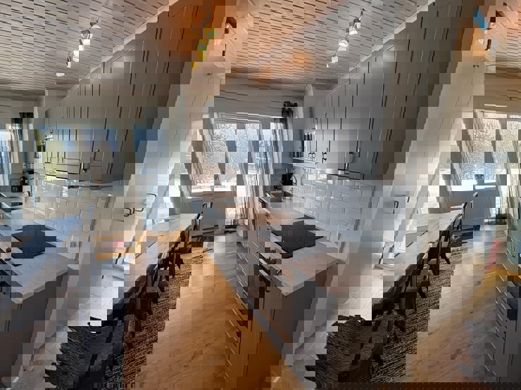 Køkkenet indeholder opvaskemaskine, komfur, køleskab med fryser, mikro, ovn.