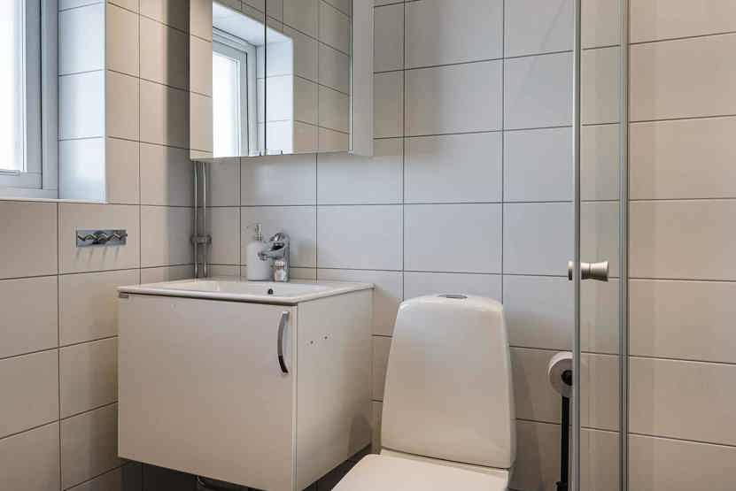 Badeværelse 1 = bruser/WC/sauna. Badeværelse 2 = bruser/WC.