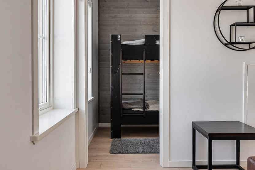Soveværelse-1 = 1 dobbeltseng som kan laves om til to enkeltsenge. Soveværelse-2 = 1 dobbeltseng som kan laves om til to enkeltsenge. Soveværelse-3 = 1 køjeseng hvor både over og underkøje er 80 cm bred. Soveværelse-4 = 1 køjeseng hvor både over og underkøje er 80 cm bred.