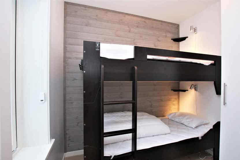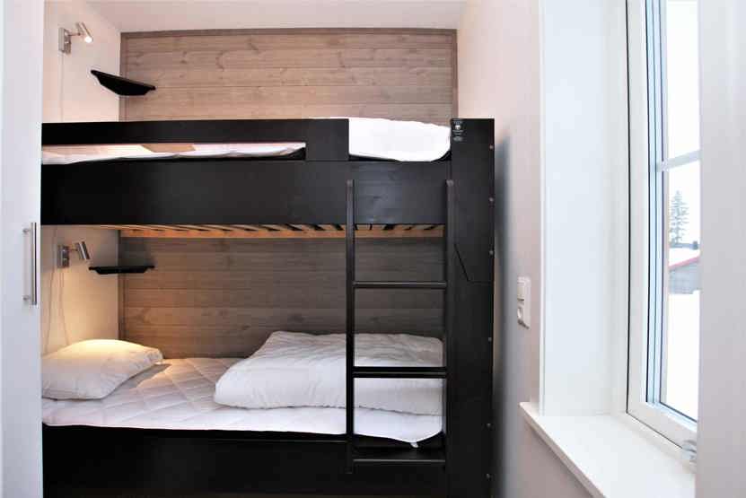 Soveværelse-1 = 1 køjeseng. Soveværelse-2 = 1 dobbeltseng. Soveværelse-3 = 1 dobbeltseng. Soveværelse-4 = 1 køjeseng. Soveværelse-5 = 1 køjeseng.