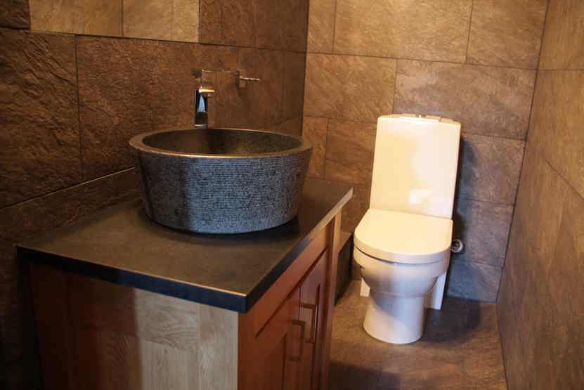 Badeværelse 1 = bruser/WC/badekar. Badeværelse 2 = bruser/WC. Badeværelse 3 = 2 bruser/1sauna. Badeværelse 4 = wc.
