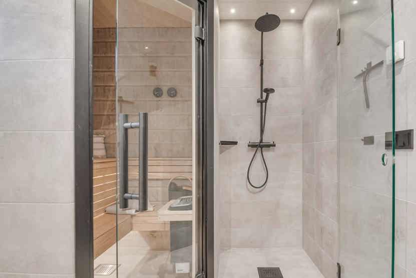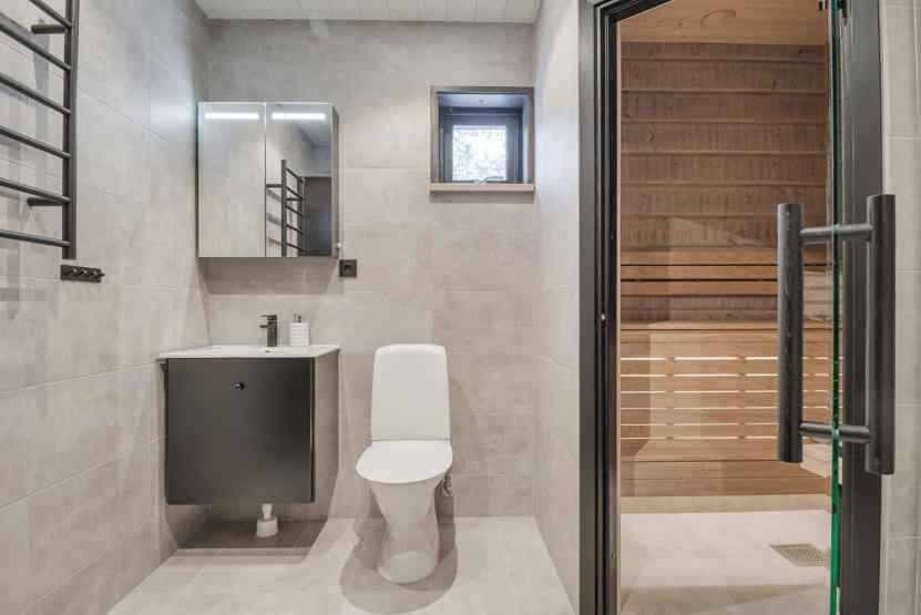 Badeværelse 1 = bruser/WC/sauna. Badeværelse 2 = wc.