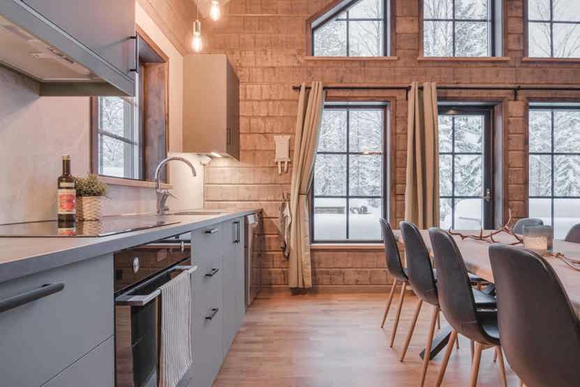 Køkkenet indeholder komfur med ovn, køleskab, fryser, opvaskemaskine, mikro.
