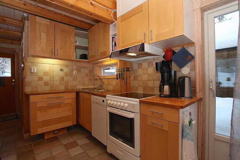 Køkkenet indeholder komfur med ovn, køleskab med fryser, opvaskemaskine, mikro.