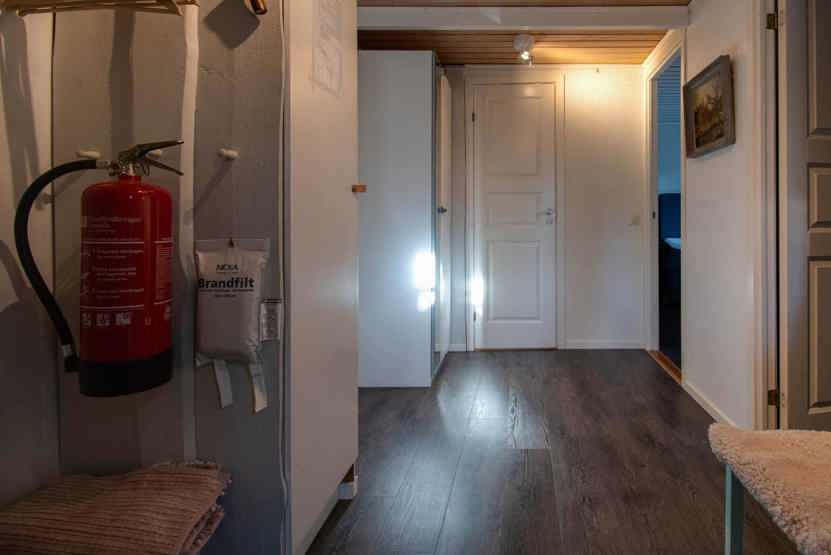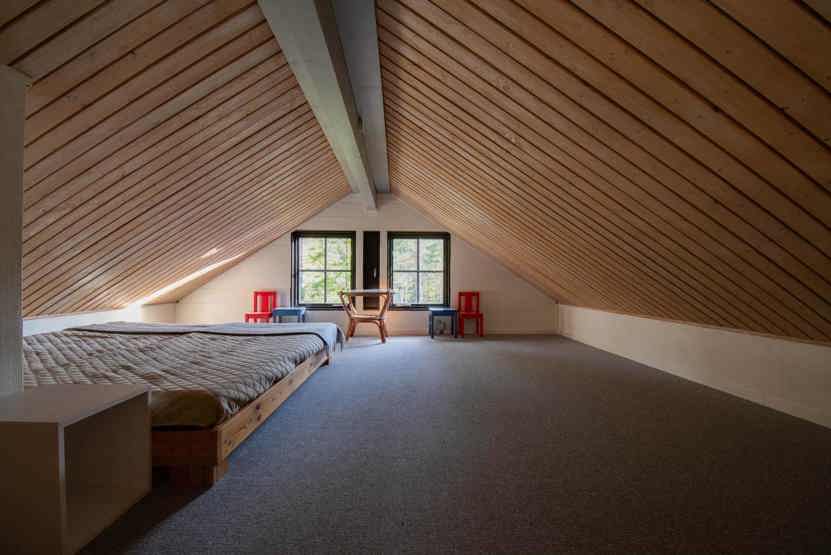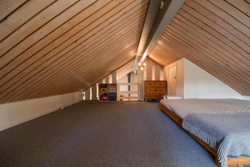 Hems med 2 enkeltsenge, væg til væg tæppe, Stejl trappe.
