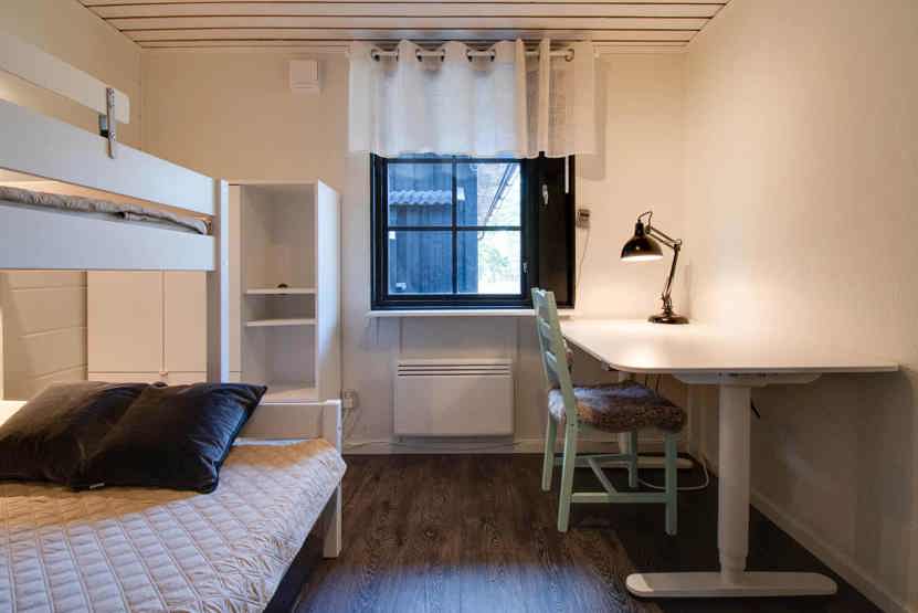 Soveværelse-1 = 1 dobbeltseng 160 cm bred. Soveværelse-2 = 1 køyeseng med 120 cm bred underkøye og 80 cm bred overkøye.