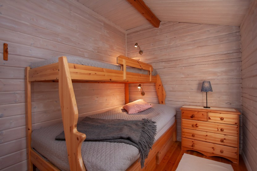 Soveværelse-1 = 1 dobbeltseng. Soveværelse-2 = 1 køjeseng med 120 cm bred underkøje.