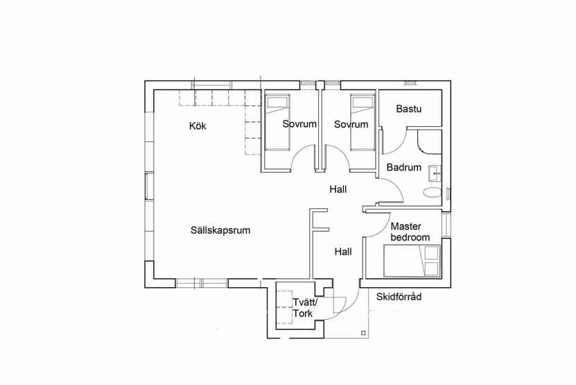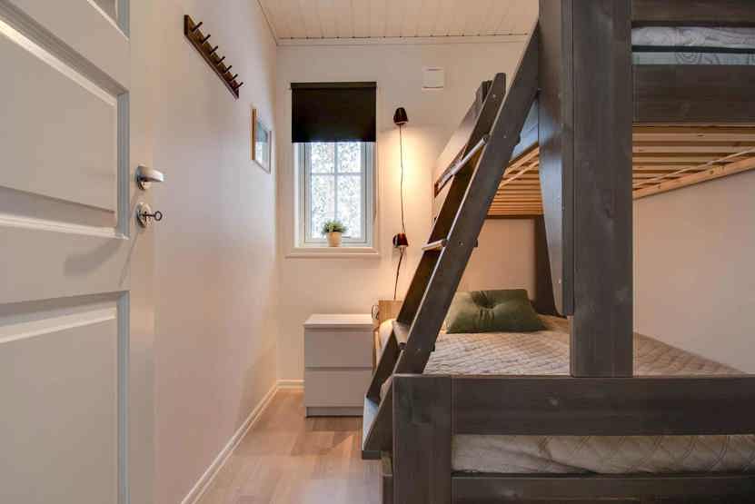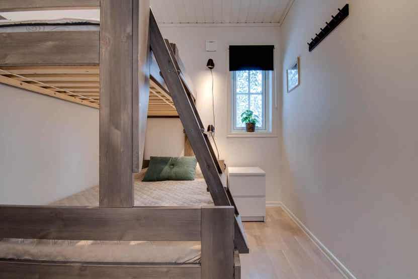 Soveværelse-1 = 1 dobbeltseng 180 cm bred. Soveværelse-2 = 1 køyeseng med 120 cm bred underkøye og 80 cm bred overkøye. Soveværelse-3 = 1 køyeseng med 120 cm bred underkøye og 80 cm bred overkøye.