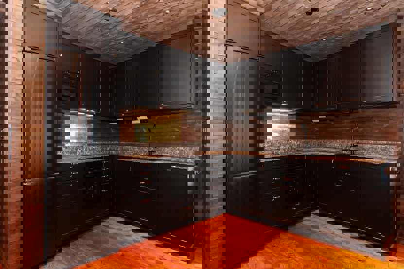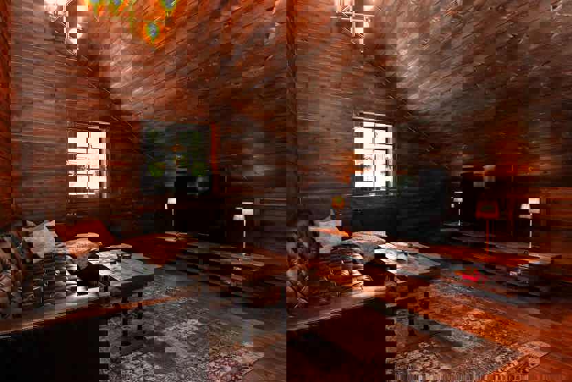 Stue med lille køkkenafdeling.