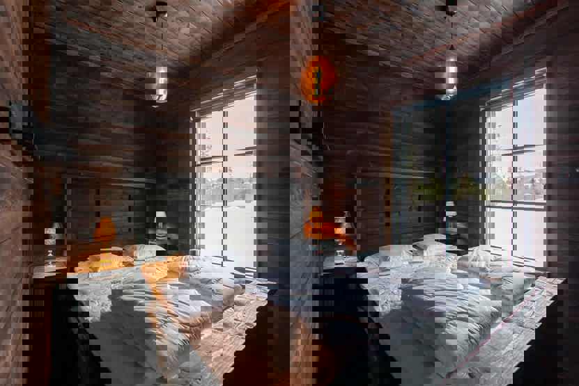 Soveværelse-1 = 1 dobbeltseng 160 cm bred. Soveværelse-2 = 1 dobbeltseng 180 cm bred. Soveværelse-3 = 1 køjeseng hvor både over og underkøje er 90 cm bred. Soveværelse-4 = 1 enkeltseng 120 cm bred.