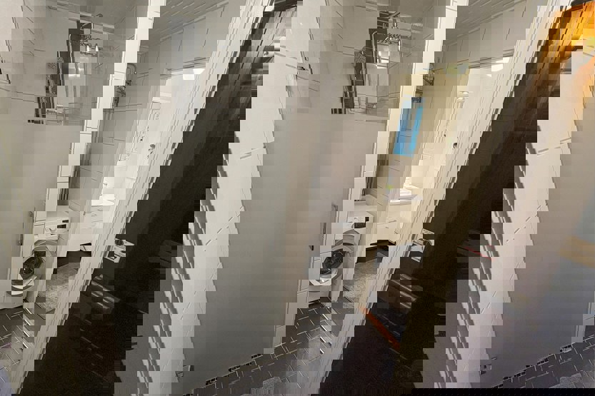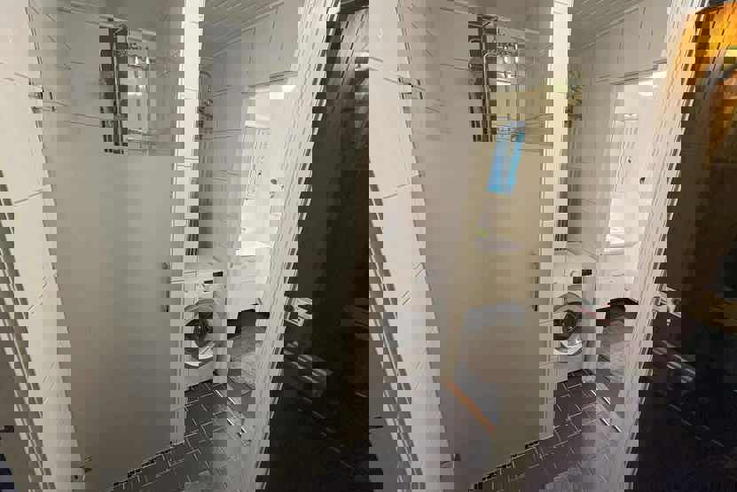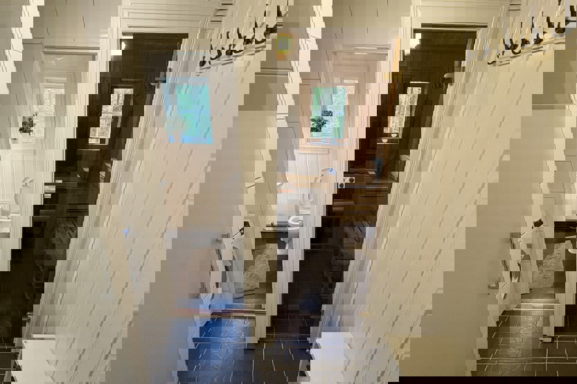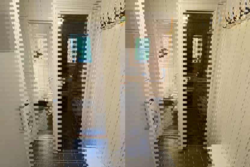 Badeværelse 1 = bruser/WC/sauna. Badeværelse 2 = wc.