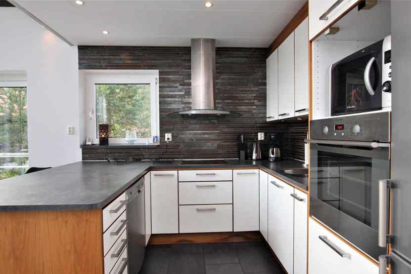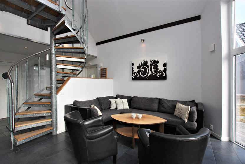 Stue med lille køkkenafdeling, TV, brændeovn (brænde indgår ikke).